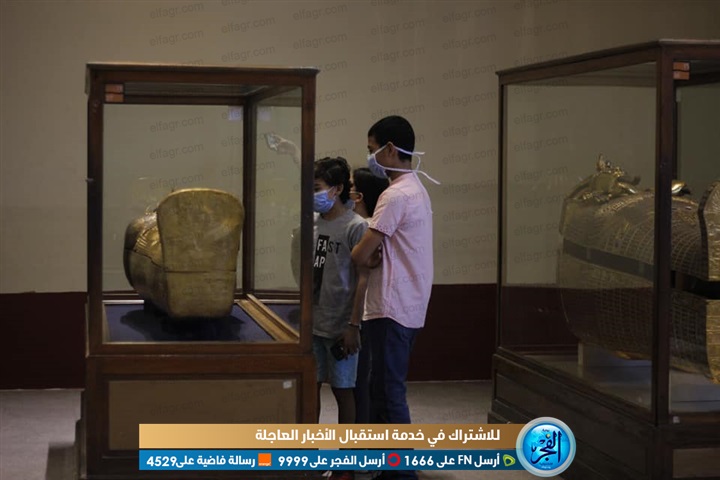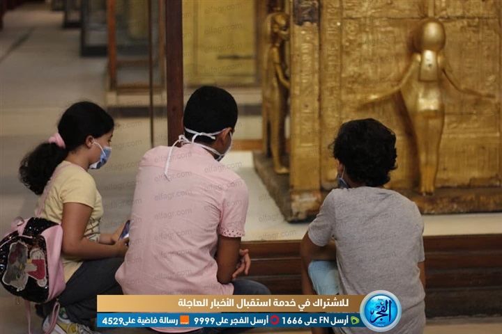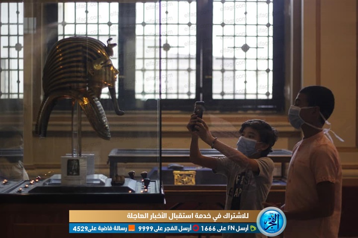 ورصدت كاميرا بوابة الفجر الإلكترونية، شغف الزائرين وخصيصًا الأطفال بقناع الملك توت عنخ آمون ومقتنياته الذهبية، خصيصًا في ظل حالة تباطؤ الإقبال الحالية بسبب كورونا، مما أتاح الفرصة لقضاء وقت أطول وسط مقتنيات الملك الذهبي.