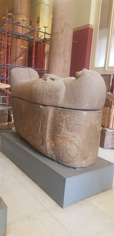 وفي ذات السياق قال الدكتور الطيب عباس مدير عام الشئون الأثرية بالمتحف المصري الكبير، إن تلك القطع تضم تابوت مصنوع من الجرانيت الوردي للملك رمسيس يزن حوالي ستة أطنان، وتمثال للملك أمنمحات الثالث مصنوع من البازلت الأسود، وعمودي الملك ساحورع من الجرانيت الوردي محفور عليهما خرطوش الملك ساحورع يصل طول كلا منهما حوالي ٦ متر ويزن كلا منهما ١٧ طن، بالإضافة إلى لوحة من الحجر الجيري للملك اخناتون.