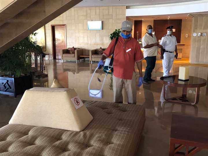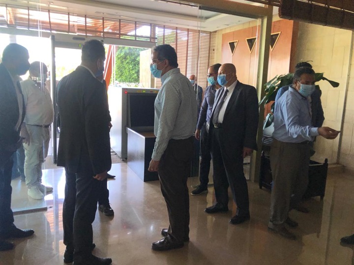 حيث تفقد الإجراءات الوقائية التي يتبعها الفندق منذ دخول الضيف من باب الفندق وإجراءات تطهير الأمتعة وقياس درجات حرارة الضيوف وتطهير اليدين، ومنطقة الاستقبال والبهو وإجراءات التسكين ومنطقة المطاعم والمطابخ والبرجولات وحمامات السباحة، والممرات الداخلية والممشى الخارجي.