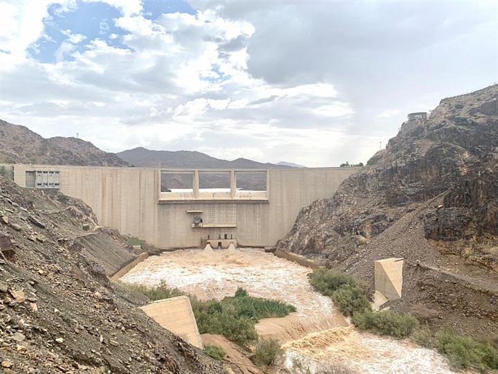 بلغت المياه المنصرفة من سد وادي نجران اليوم، 5.839.200 مليون متر مكعب، بارتفاع 29 متراً، جرى التحكم بها وتصريفها من خلال بوابات السد إلى وادي نجران.