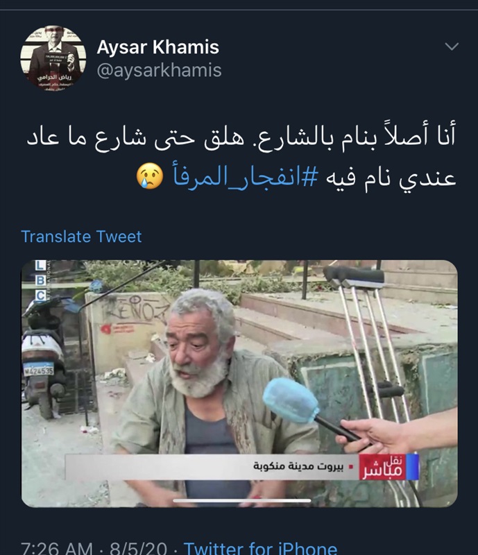 وغرد احد المشاهير "وإذا سألوك عن #لبنان فقل: بلد بجمال يوسف وحزن أبيه" واستكمل اخر "كان البعض يردّد، بعد ناقص النيزك ينزل علينا، ألا يُشبه مشهد #انفجار_المرفا سقوط نيزك أو قنبلة ٍ كيماوية...يا رب أحم ِ شعبك، كفانا عذابا ً وبؤسا ً، ألا نستأهل وطنا ً يأوينا بسلام؟"