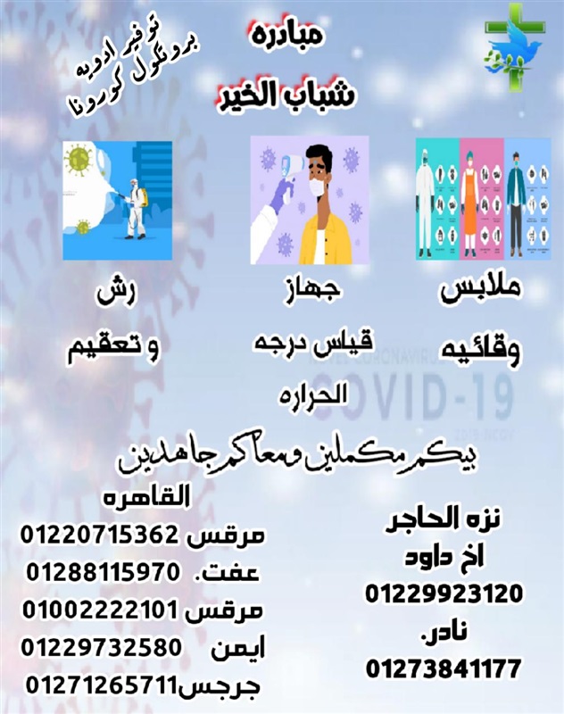 وتواصل وزارة الصحة والسكان رفع استعداداتها بجميع محافظات الجمهورية، ومتابعة الموقف أولًا بأول بشأن فيروس "كورونا المستجد"، واتخاذ كافة الإجراءات الوقائية اللازمة ضد أي فيروسات أو أمراض معدية، كما قامت الوزارة بتخصيص عدد من وسائل التواصل لتلقي استفسارات المواطنين بشأن فيروس كورونا المستجد والأمراض المعدية، منها الخط الساخن "105"، و"15335" ورقم الواتساب "01553105105"، بالإضافة إلى تطبيق "صحة مصر" المتاح على الهواتف الذكية.