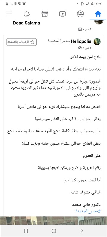 وأضاف الطبيب في منشوره أن هذا المرض سيكلف الفرد الواحد ما يقارب من ١٨ ألف جنيه في مدة عام ونصف، وأن تلك العربة بما تحويه من ٤ عجول سوف تصيب علي الأقل 200 شخص.