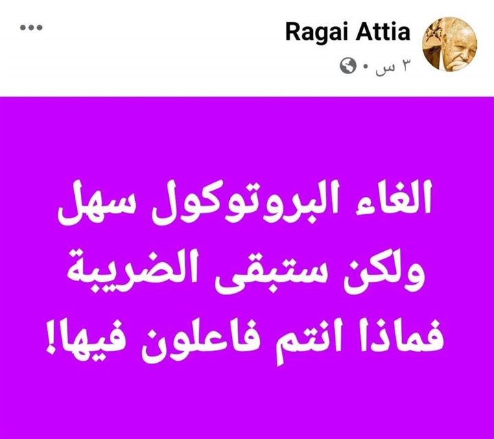 قال رجائي عطية نقيب المحامين، إن إلغاء بروتوكول ضريبة القيمة المضافة سهل، ولكن ستبقى الضريبة.