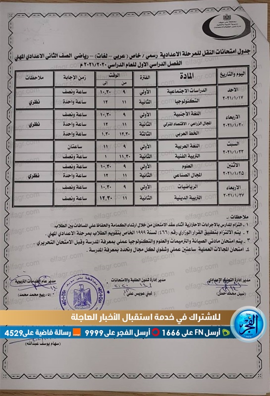 ننشر جداول امتحانات صفوف النقل والشهادة الإعدادية الفصل الدراسي الأول ببني سويف