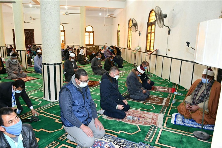 وأدى سكرتير عام المحافظة المساعد، يرافقه الدكتور حسني أبو حبيب، وكيل وزارة الأوقاف، وعدد من أئمة ورجال الأوقاف، صلاة الجمعة بالمسجد، بحضور عدد من أهالي القرية.