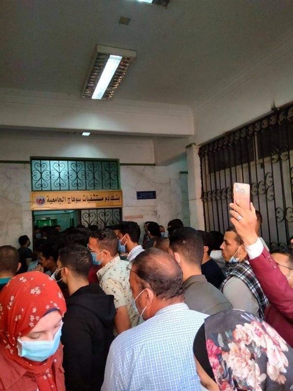 ألاف الشباب يتوجهون إلى مستشفيات سوهاج، وذلك للتبرع بالدم لمصابى حادث قطارى سوهاج، تلبية لمبادرة أهالى سوهاج لإظهار شهامة الصعايدة فى إنقاذ مصابى حادث القطار.