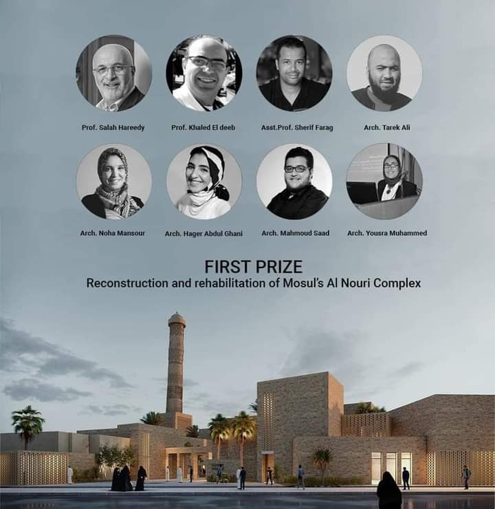وكانت منظمة اليونسكو قد أعلنت عن هذه المسابقة في شهر نوفمبر الماضي بالتعاون مع وزارة الثقافة العراقية وديوان الوقف السني العراقي، وبدعم من الإمارات العربية المتحدة، حيث يعد مجمع جامع النوري التاريخي في الموصل بالعراق، أحد العناصر الرئيسية في مشروع اليونسكو الطموح "إحياء روح الموصل" الرامي إلى إعادة تأهيل المدينة القديمة، وقد فاز مشروع فريق جامعة الإسكندرية برئاسة الدكتور صلاح هريدي والذي يحمل عنوان "حوار الأروقة"، وتم اختياره من بين 123 تصميمًا.