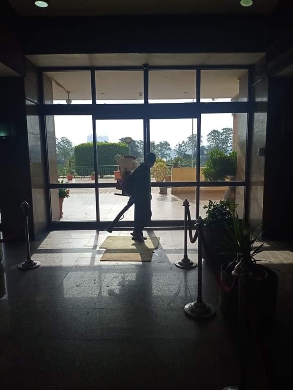 وشملت التعقيمات جميع المداخل والمكاتب والمصاعد والسلالم ودورات المياه وغرف الاجتماعات والمسجد الخاص بالوزارة وذلك للوقاية من فيروس كورونا، وطبقًا لتوجيهات الدكتور محمد عبدالعاطي وزير الموارد المائية والري، باتخاذ كافة التدابير والإجراءات الاحترازية اللازمة لمواجهة فيروس كورونا.