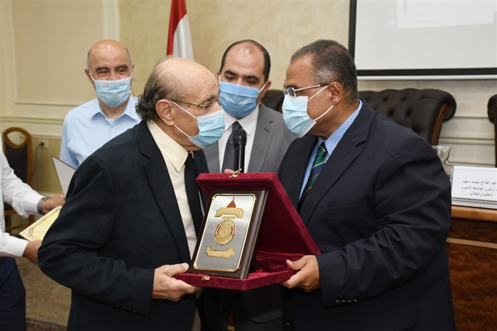 وقام أ.د عبد الفتاح سعود بتكريم ومنح درع الجامعة لكل من الأساتذة: