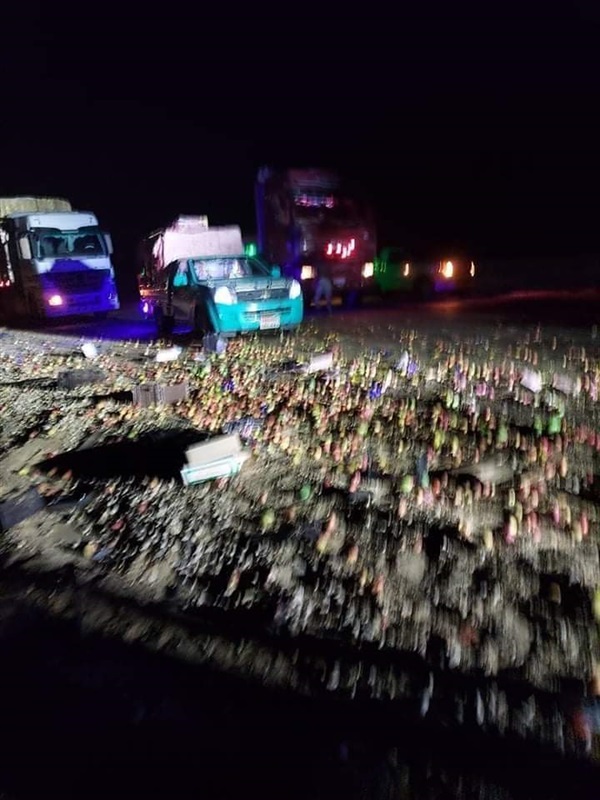وتلقى مسؤول غرفة العمليات بالإدارة العامة لمرور الجيزة إشارة من إدارة شرطة النجدة بوقوع حادث تصادم سيارة نقل محملة بالخضروات والفاكهة وأتوبيس نقل ركاب تابع إحدى شركات البترول، مساء الخميس بالكيلو 104 طريق "القاهرة الواحات البحرية".