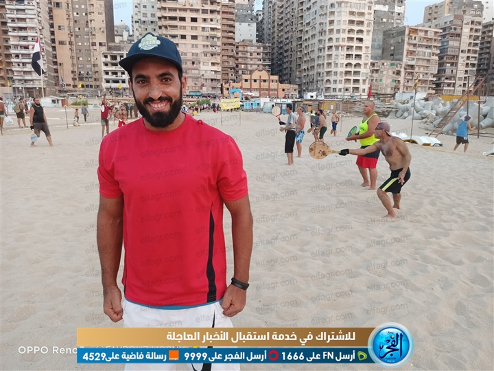 واضاف أشكر إدارة الشواطئ وسيادة اللواء جمال رشاد على تخصيص هذه المساحة لنا، فهي مناسبة للعب بنسبة لباقي الشواطئ فهي أصغر حجمًا، والمكان في شاطئ الطاحونة قديم ومعروف وهو أساس اللعبة.