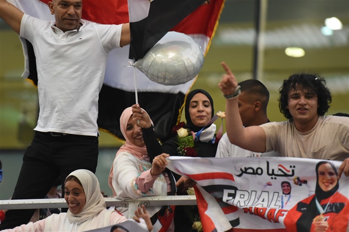 وصلت منذ قليل إلى مطار القاهرة، البطلة المصرية فريال أشرف لاعبة الكاراتيه الحاصلة على الميدالية الذهبية الوحيدة لمصر في أولمبياد طوكيو 2020.