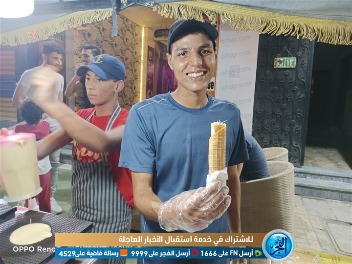 وعلى عربة صغيرة بمنطقة العصافرة يقف الشابان "طارق وحسام"، ويقومان يصنع بسكويت "الفريسكا" المحشو بأنواع مختلفة من الشوكولاتة واللوتس والفراولة والمارشيلمو، وغيرها من الأطعمة المختلفة مع الصوصات، ويمكنك قبل دخول الشارع أن تشم رائحتها الحُلوة التي تجذبك إليها على الفور.