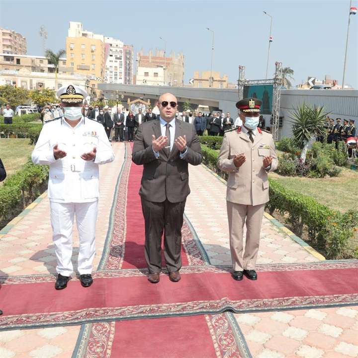 وقام محافظ بني سويف، بقراءة الفاتحة ترحما على أرواح شهداء الواجب الأبرار من أبناء مصر المخلصين، تلاها عزف سلام الشهيد والنشيد الوطني بمصاحبة عزف الموسيقات النحاسية ووسط ترديد الأغاني الوطنية ورفرفة الأعلام ابتهاجًا بهذه المناسبة التاريخية، وذلك في حضور:الدكتور عاصم سلامة نائب المحافظ، وبلال حبش نائب المحافظ، العميد طيار أ.ح علاء الدين ظهران قائد قاعدة بني سويف الجديدة، والعميد عماد الدين عبد السميع المستشار العسكري للمحافظة، اللواء أسامة حلمي نائب مدير الأمن، واللواء محمد جلال مكتب الرقابة الإدارية، رئيس مكتب المخابرات العامة ببني سويف واللواء جمال مسعود السكرتير العام ولفيف من القيادات الأمنية والتنفيذية وأعضاء مجلسي النواب والشيوخ.