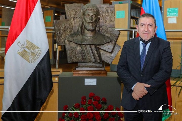 بدأت الزيارة بوضع السفير والوفد المرافق له إكليلا من الزهور أمام تمثال الشاعر الأذربيجاني نظامي گنجوي والذي كانت أهدته دولة أذربيجان إلى مكتبة الإسكندرية.