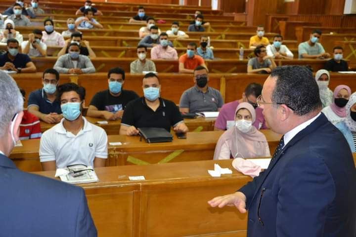 ورحب رئيس الجامعة خلال جولته بالطلاب الجدد والقدامى، مهنئًا إياهم بمناسبة العام الدراسي، وفتح قنصوة حوارا مفتوحا مع الطلاب في مختلف الكليات وتناقش معهم حول سير العملية التعليمية، مطالبا الطلاب بضرورة التعاون في تطبيق كافة الإجراءات الوقائية حفاظا على صحتهم وسلامتهم وضرورة تعاطي لقاح "الفاكسين"، وأشار قنصوة إلى تطبيق نظام ال" “green pass للتأكد من حصول جميع منتسبي الجامعة علي لقاح كوفيد 19، تنفيذا لقرار مجلس الوزراء المصري بضرورة الإنتهاء من كافة التطعيمات.
