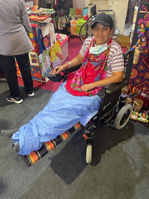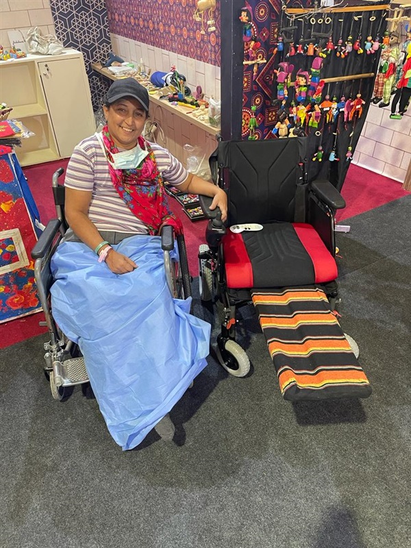 بتوجيهات الرئيس.. توفير "كرسي متحرك" ورعاية طبية لسيدة مشاركة بمعرض "تراثنا"