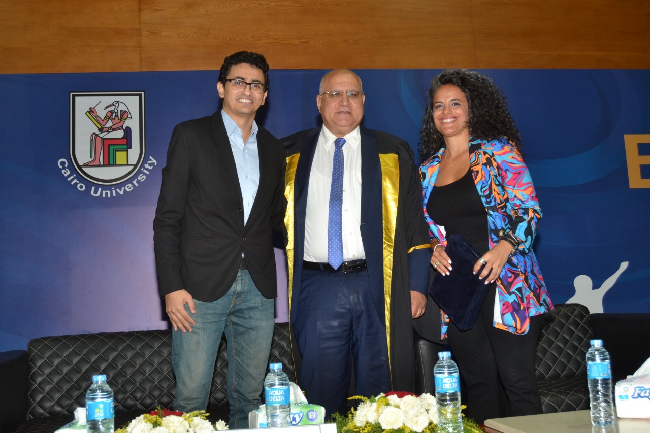 جاء ذلك بحضور الدكتور جمال محمد شحاتة عميد كلية التجارة، وا.د.عماد الزمر مدير مركز البحوث، وعدد من قادات كلية التجارة جامعة القاهرة، والسيد ڤينسينت مدير مركز الدراسات الرياضية بالفيفا، والسيدة Honey مديرة الاتصالات بالفيفا.
