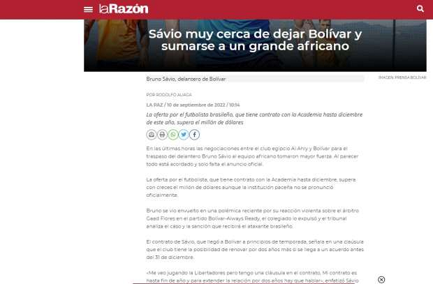 وقالت صحيفة La Razón Digital البوليفية أن إدارة النادي الأهلي برئاسة الكابتن محمود الخطيب قدمت عرض يتجاوز المليون دولار أمريكي وبات اللاعب قريب للغاية من الانضمام لصفوف القلعة الحمراء بعد الاتفاق مع ناديه على كافة التفاصيل التعاقديه والمالية.
