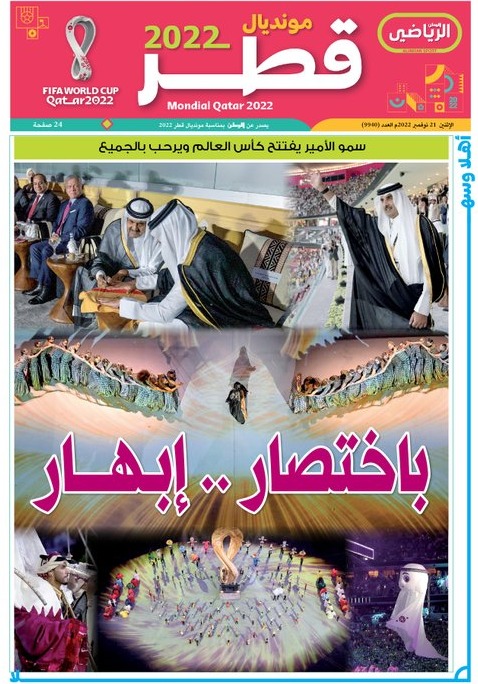 فيما عنونت صحيفة قطر الرياضى، "مونديال قطر 2022 باختصار.. إبهار، سمو الأمير يفتتح كأس العالم قطر 2022 ويرحب بالجميع".