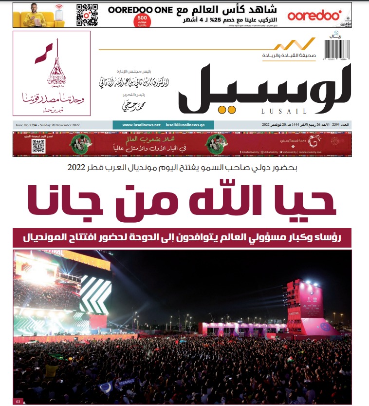 بينما كتبت صحيفة لوسيل القطرية تحت عنوان، "حيا الله من جانا"، وأضافت: "رؤساء وكبار ومسئولى العالم يتوافدون إلى الدوحة لحضور افتتاح المونديال".
