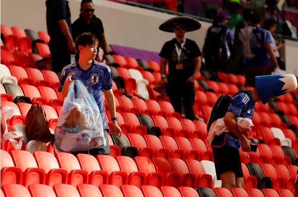 ويقوم جمهور المنتخب الياباني بتنظيف المدرجات بعد كل لقاء، فقد قاموا به بعد فوزهم في مباراة ألمانيا، إلا أن استمرارهم في هذا الفعل أيضًا بعد هزيمتهم أمام كوستاريكا يُعد أكثر تحضرًا لأن الحزن والغضب لم يجعلهم يتوقفون عن عادتهم الجميلة.