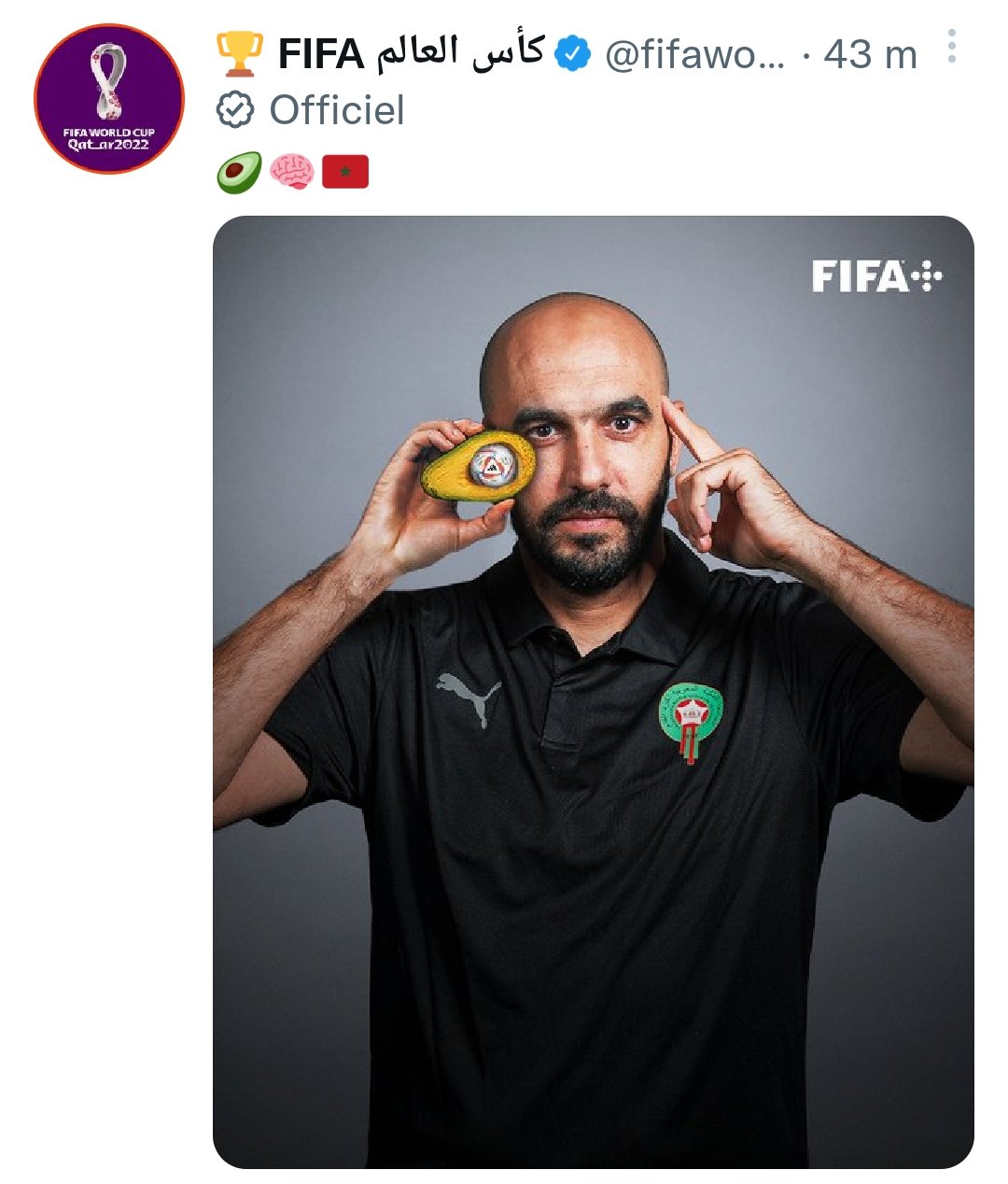 وعلق وليد الركراكي على تسميته برأس الأفوكادو، خلال المؤتمر الصحفي لمباراة بلجيكا: "استحضروا النية وشجعوا اللاعبين وسترون صاحب رأس الأفوكادو ماذا سينجز؟".
