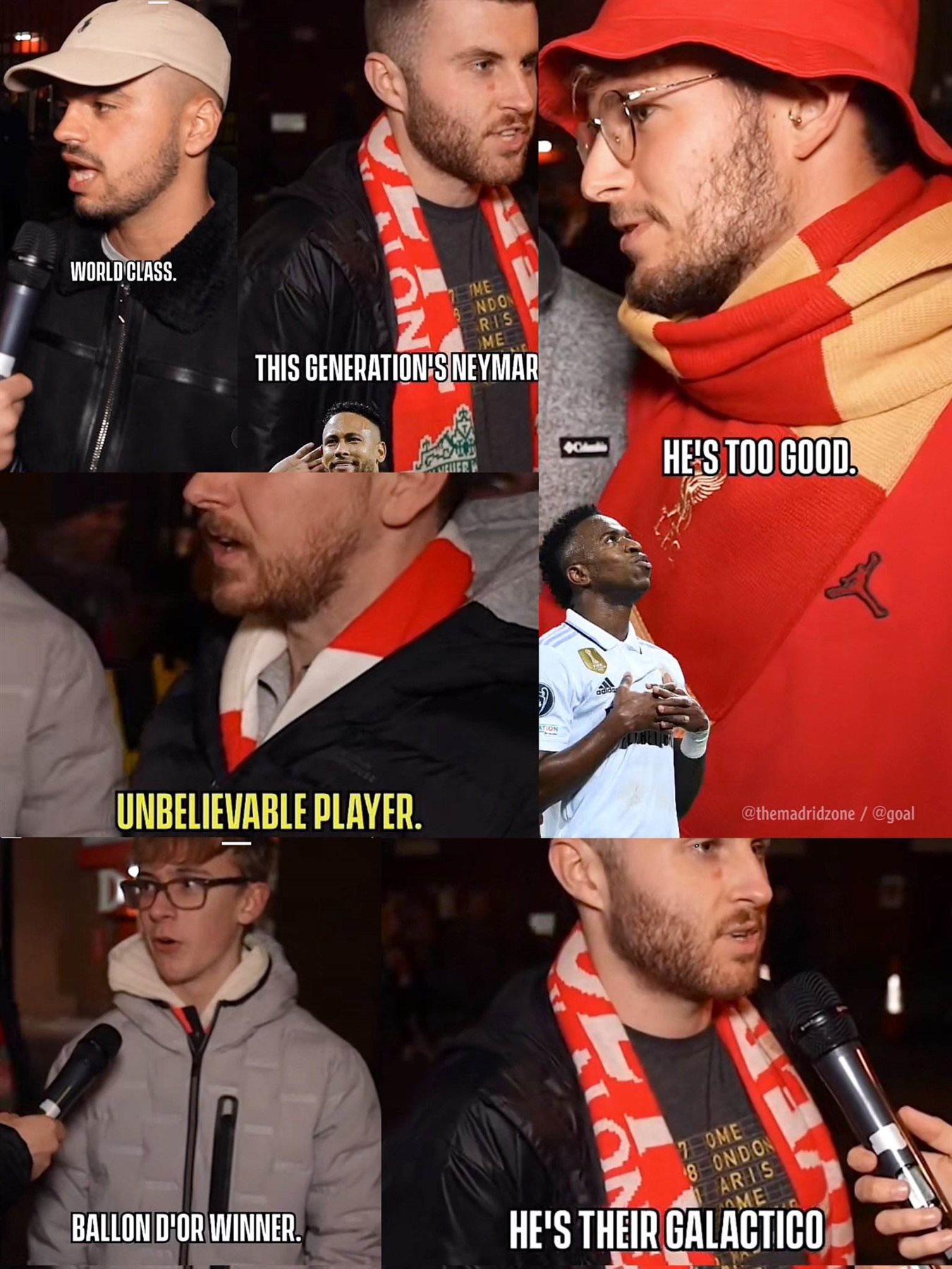 وذكر موقع "جول" العالمي، أن مشجعي ليفربول وقعوا في حب فينيسيوس، بعد الأداء الرائع والمميز الذي قاد فريقه به إلى ريمونتادا تاريخية مؤكدين:" إنه لاعب من الطراز العالمي، لاعب قوي جدًا، لاعب غير عادي، سيفوز بالكرة الذهبية في المستقبل".