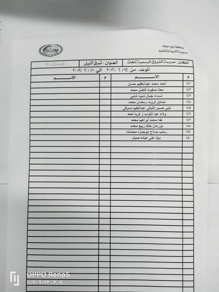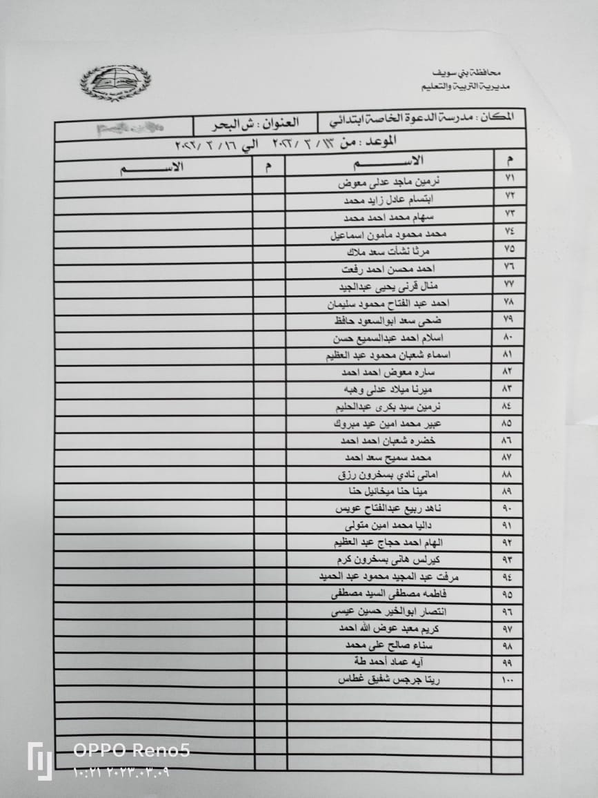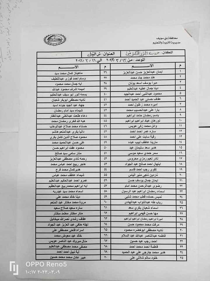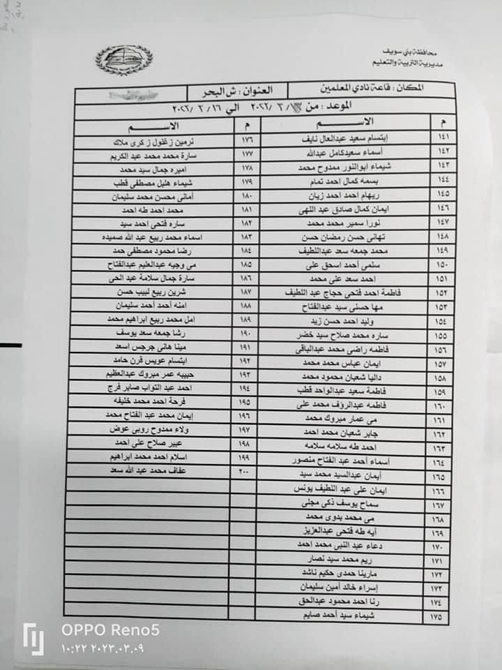 اسماء المقبولين بمسابقة الـ30 ألف معلم ببني سويف