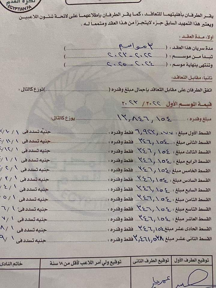 لا يزال مسلسل تسريبات عقود لاعبي الفريق الأول لكرة القدم بنادي الزمالك مستمرًا، حيث شهدت الساعات القليلة الماضية تسريب عقد نجم القلعة البيضاء بمبالغ صادمة.