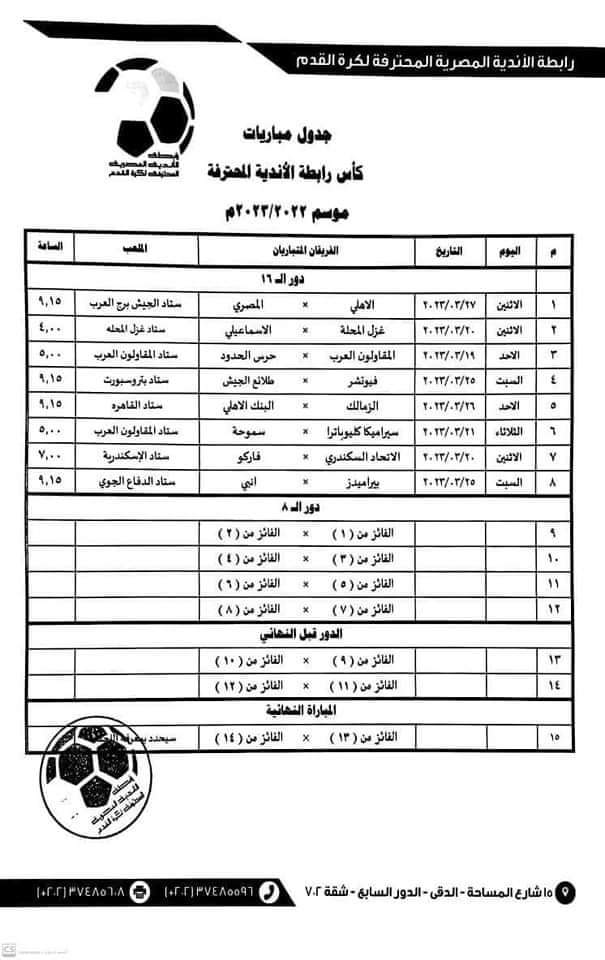 أعلنت رابطة الأندية المصرية المحترفة، برئاسة أحمد دياب، مواعيد مباريات كأس الرابطة المصرية لمواجهات قوية بمشاركة 16فريق من الدوري في دور الـ16 للبطولة 2023.