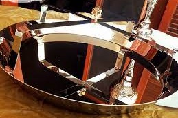1 – الصينية: من الفضة أو المعدن مستديرة الشكل تتسع للقربانة التي توضع فيها. ترمز مرة للمزود الذي وضعت فيه العذراء مريم الطفل يسوع فور ولادته، وترمز مرة للقبر الذي وضع فيه يوسف الرامي جسد يسوع بعد إنزاله من على الصليب.