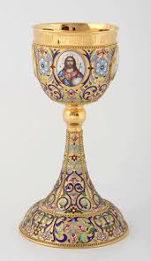 3 – الكأس: من الفضة أو المعدن. يوضع داخل كرسي الكأس عند فرش المذبح وتصب فيه قارورة الأباركة ويُضاف إليه مقدار الثلث من الماء. والكأس يرمز لآلام المسيح المبرحة على الصليب كأس الألم. كما يرمز إلى جنب السيد المسيح الذي نزل منه دم وماء عند طعنه بالحربة بعد موته المحيي على الصليب.