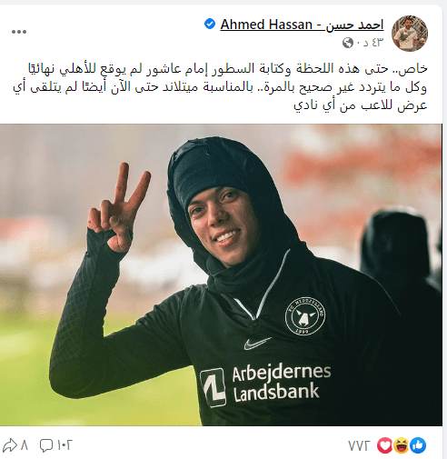 رد إمام عاشور، لاعب نادي الزمالك السابق وميتلاند الدنماركي الحالي، على أنباء انضمامه لصفوف النادي الأهلي في فترة الانتقالات الصيفية المقبلة، ولكن بطريقة غير مباشرة.