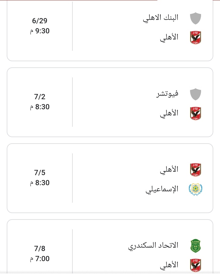 مواعيد المباريات المقبلة - الأهلي vs حرس الحدود: