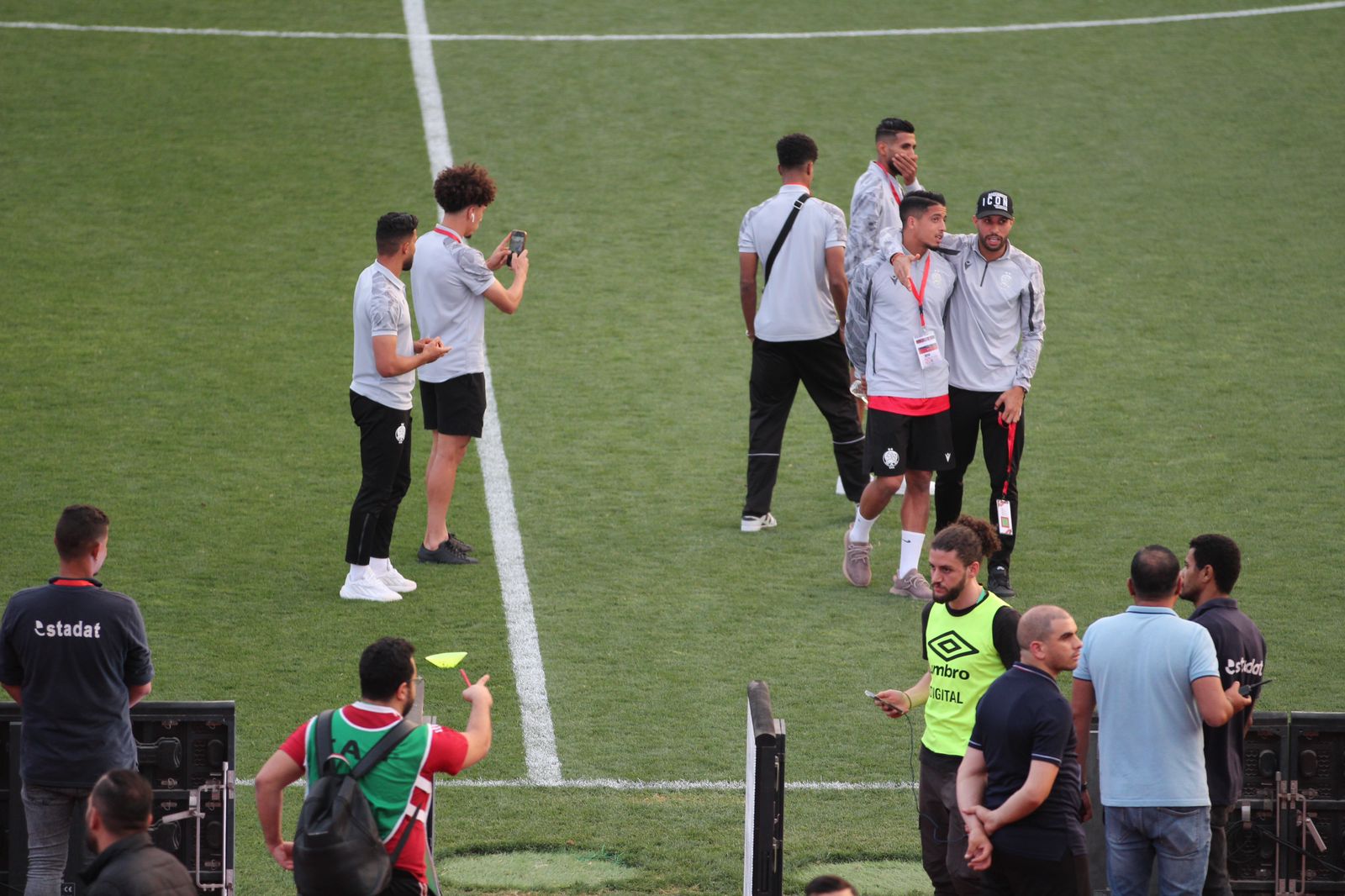 وحرص بعض اللاعبين على التقاط الصور التذكارية قبل عمليات الإحماء في ظل التواجد الجماهيري الضخم بستاد القاهرة.