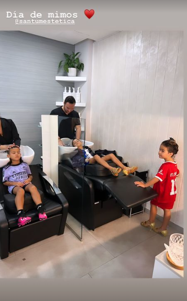 حيث جاء في الصورة ارتداء ابنة البرتغالي قميص محمد صلاح لاعب الفريق الأول لكرة القدم بنادي ليفربول الإنجليزي.