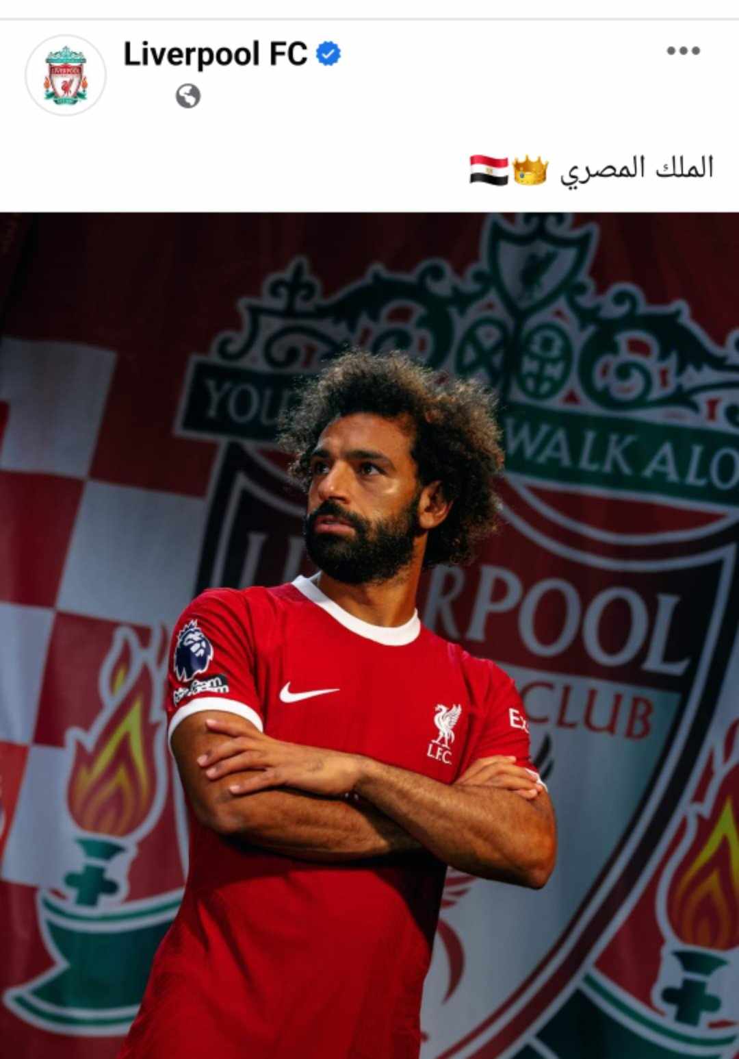 وكتب ليفربول عبر صفحته الرسمية على موقع التواصل الإجتماعى "فيس بوك"، "الملك المصري" مصحوبة بتاج ملكي وعلم مصر مرفقة بصورة لمحمد صلاح بقميص الريدز.