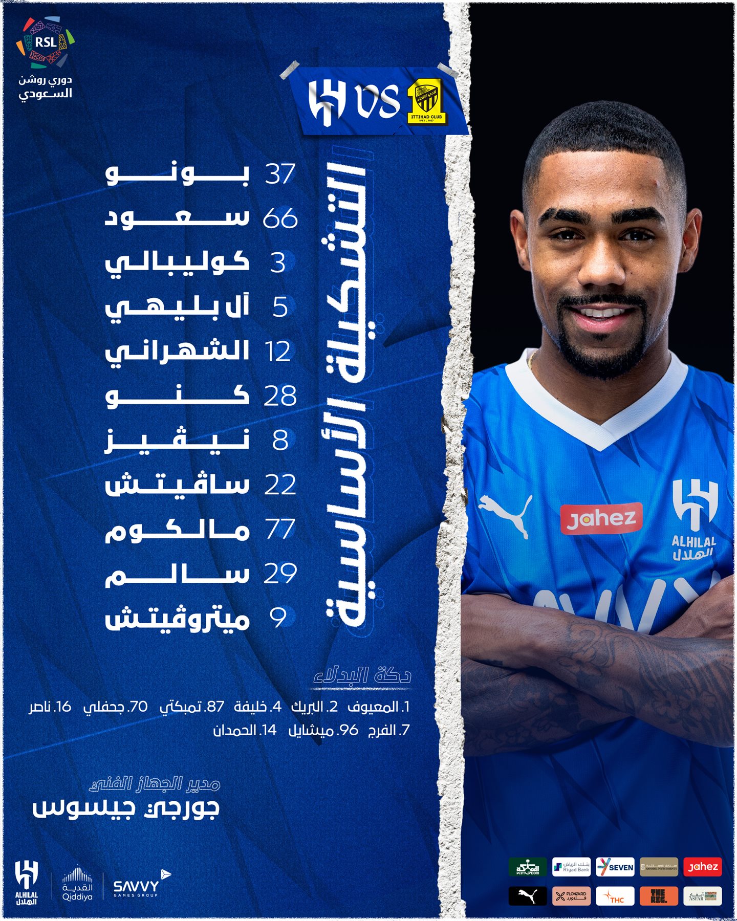 خط الهجوم: مالكوم - سالم الدوسري - ميتروفيتش.