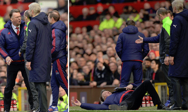 انفعل الهولندي لويس فان جال المدير الفني لنادي مانشستر يونايتد بسبب قرارات الحكم في مباراة فريقه ضد أرسنال عام 2016، واعترض فان جال بطريقة كوميدية على قرارات الحكم، حيث سقط أرضًا أمام الحكم الرابع لتمثيل طريقة سقوط لاعبي الجانرز واعتراضا منه على احتساب الأخطاء لهم.