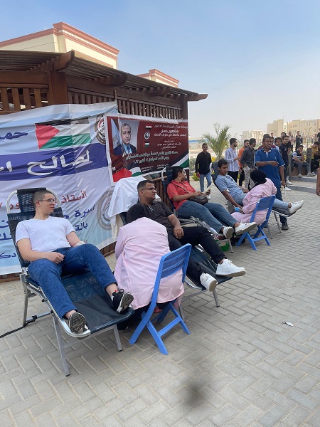 وأشاد رئيس الجامعة، بالإقبال الكبير من قبل الطلاب وأعضاء هيئة تدريس والعاملين الذين قدموا صورة مشرفة للتضامن الإنساني بالتواجد بإعداد كبيرة والتبرع بالدم، الأمر الذي يبرهن على أن الشعب المصري دائمًا داعمًا للشعب الفلسطيني، مؤكدًا حرص الجامعة على التضامن مع أهالي فلسطين، والمساهمة في إنقاذ الأرواح، ومساعدة المصابين وأسرهم، والتخفيف من حدة أحداث العنف.