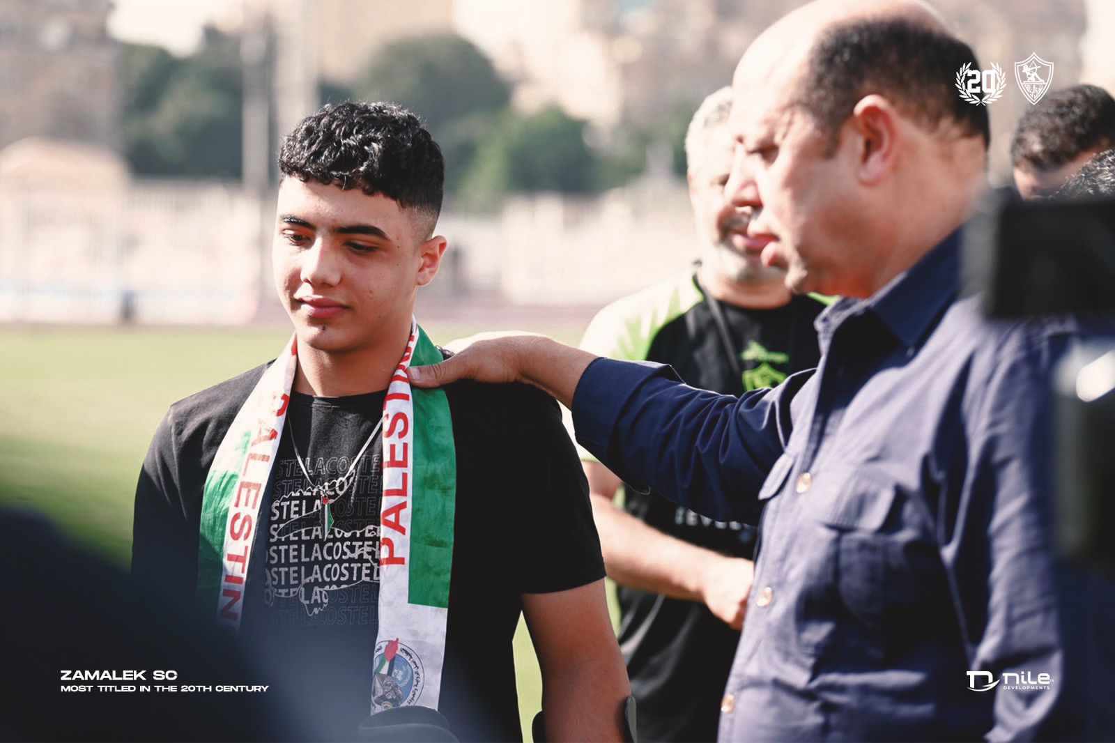 وحرص أحمد سليمان عضو مجلس إدارة النادي والمشرف على الكرة، خلال تواجده في تدريبات الفريق على الحديث مع الشاب الفلسطيني مؤكدا له بأن نادي الزمالك يرحب به في أي وقت، وشدد على دعم النادي دائما للقضية الفلسطينية.