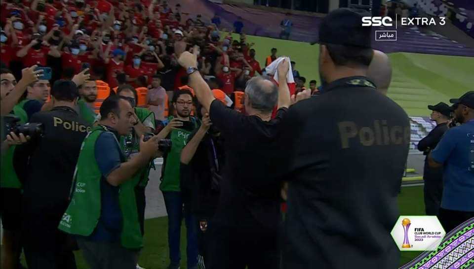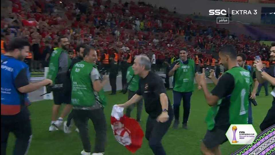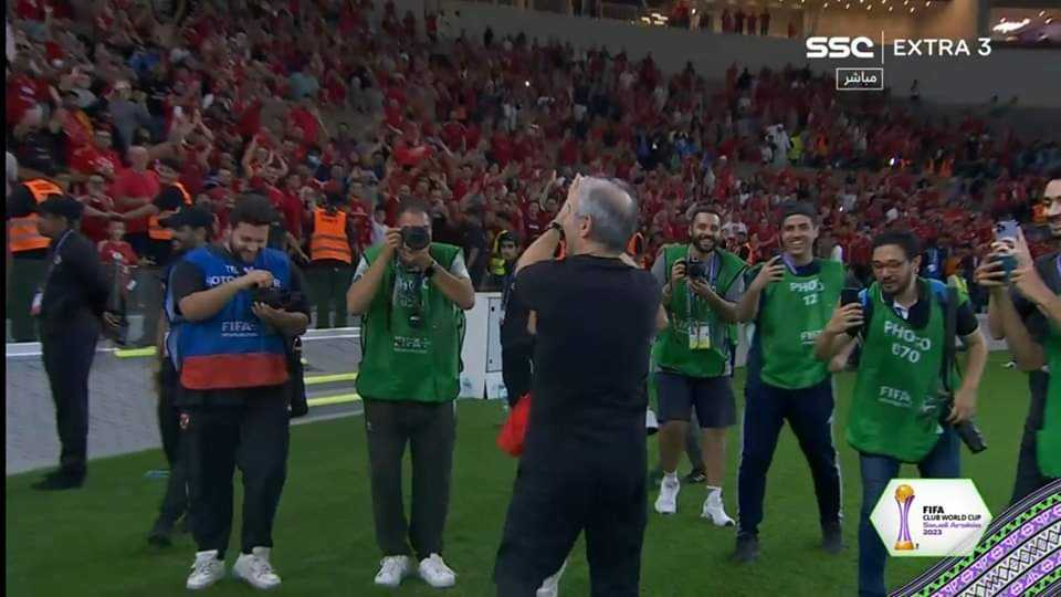 حرص مارسيل كولر المدير الفني للنادي الأهلي على الاحتفال كالنسر ببرونزية كأس العالم للأندية عقب المباراة.