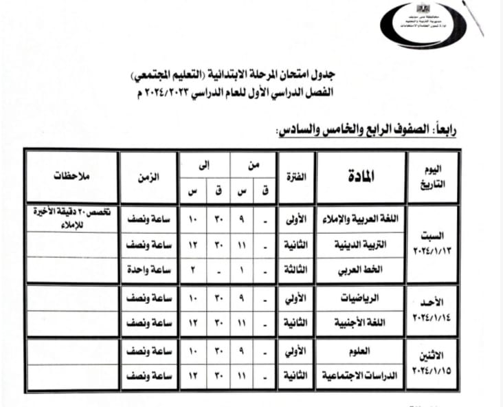 تعليم بني سويف يعلن جداول امتحانات "التيرم الأول" لسنوات النقل والشهادة الإعدادية