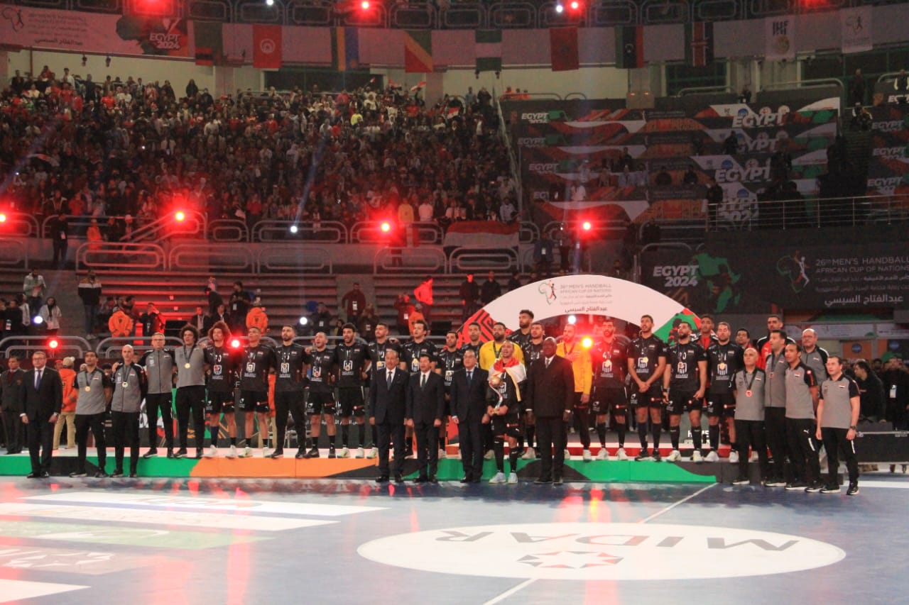 وفى ختام فعاليات حفل النسخة الـ 26 من بطولة كأس أمم إفريقيا لكرة اليد للرجال 2024، قام الدكتور مصطفى مدبولى بتسليم كأس البطولة، إلى المنتخب المصرى الفائز بلقب بطولة كأس أمم إفريقيا لليد للرجال 2024، مقدمًا لهم التهنئة بهذا الفوز المستحق الذى يُعد الثالث على التوالى ببطولة كأس أمم إفريقيا، كما يُعد اللقب الأفريقى التاسع فى تاريخه، مشيدًا بالأداء المتميز والرجولى لأبطال المنتخب المصرى، وجهازه الفنى، الذين حرصوا على اسعاد الشعب المصرى بحصولهم على هذه البطولة المؤهلة إلى أولمبياد باريس 2024.
