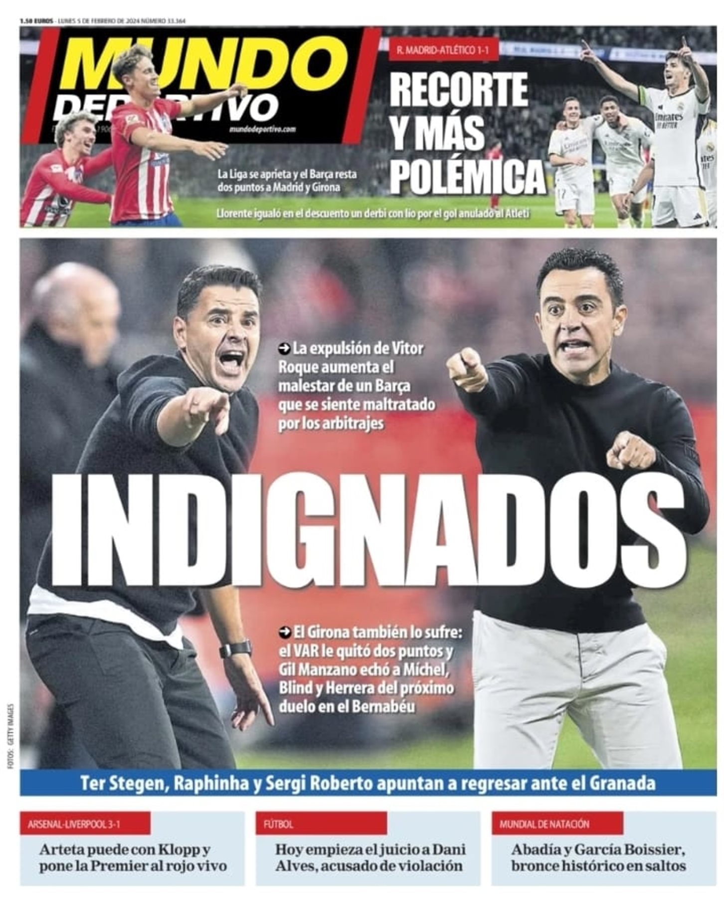الصحف الأوروبية صباح اليوم.. موندو ديبورتيفو: غضب في الريال بعد التعادل مع أتلتيكو.. ماركا: أرتيتا يسكت المتصدر في البريميرليج