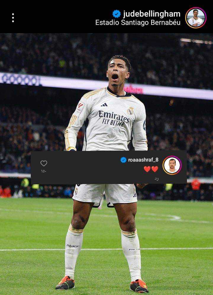 وتفاعل محمد أشرف روقا لاعب وسط الزمالك، مع منشور بيلينجهام بوضع “إيموجي قلب”.