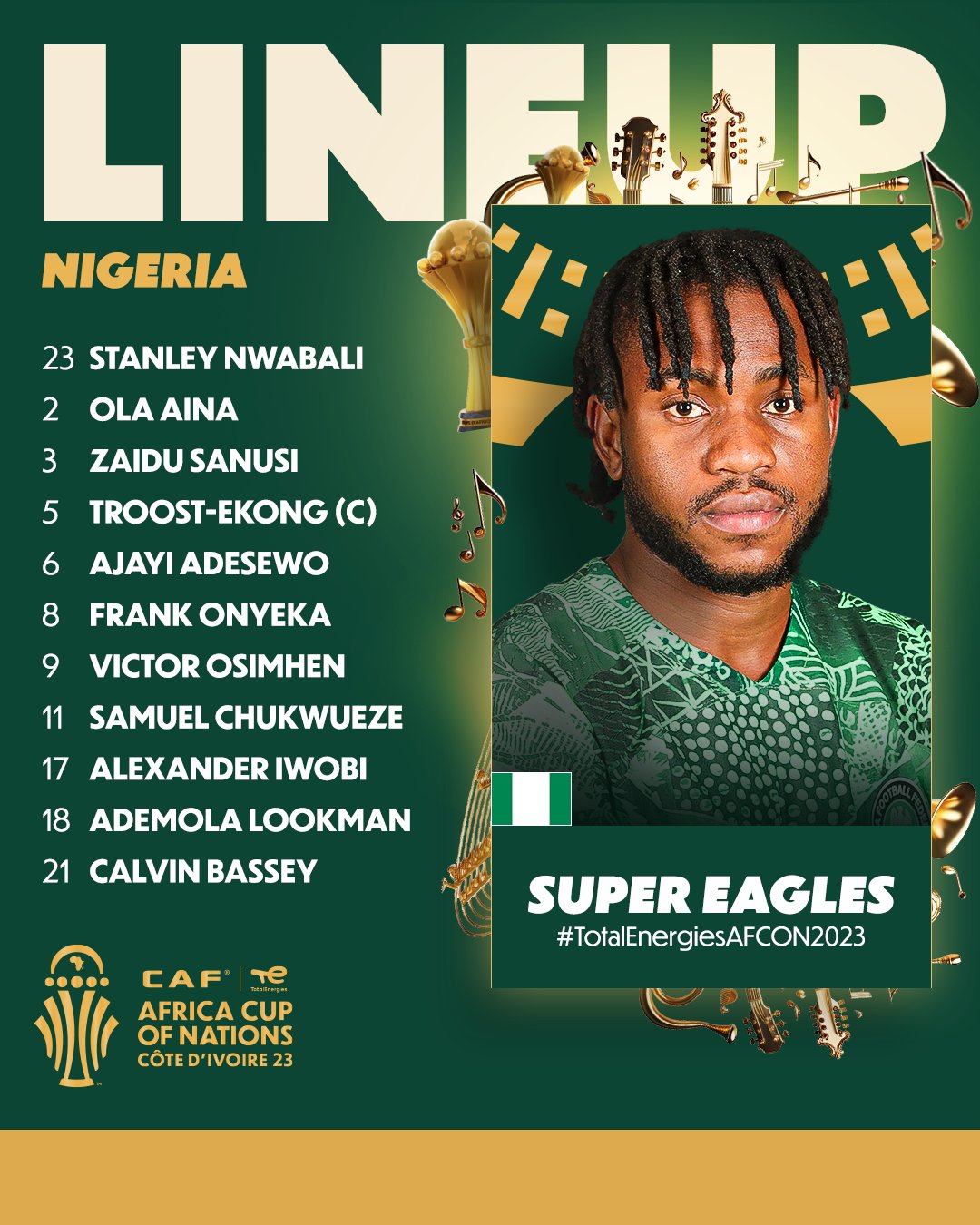 تشكيلة مباراة نيجيريا وكوت ديفوار اليوم في نهائي إفريقيا