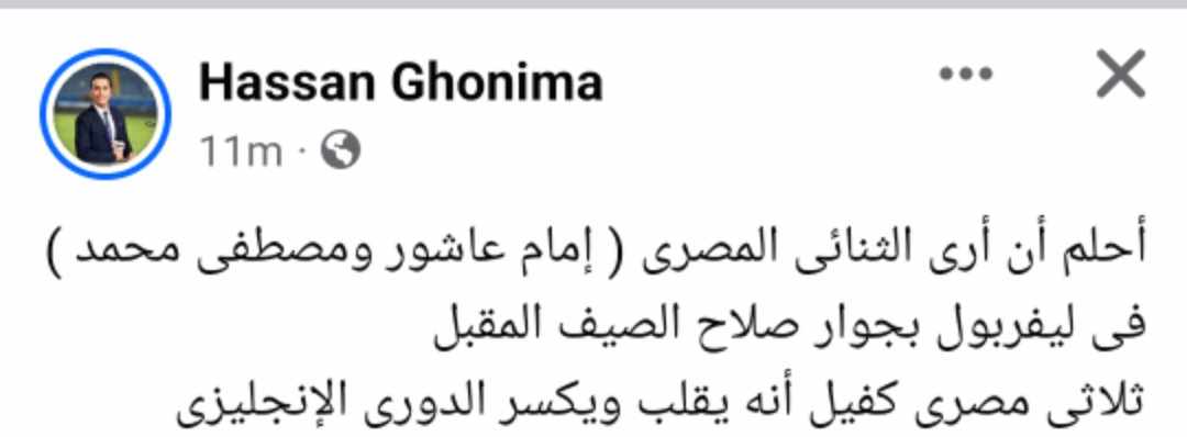 وأضاف حسن غنيمة في منشوره الشخصي: "هذا ثلاثي كفيل أنه يقلب ويكسر الدوري الإنجليزي".